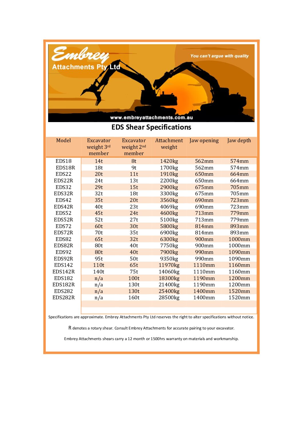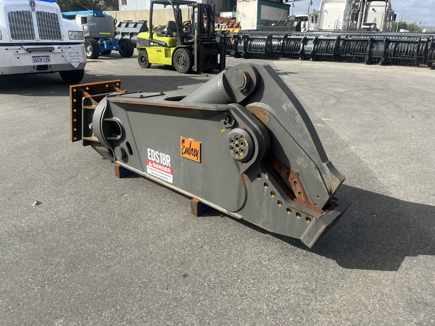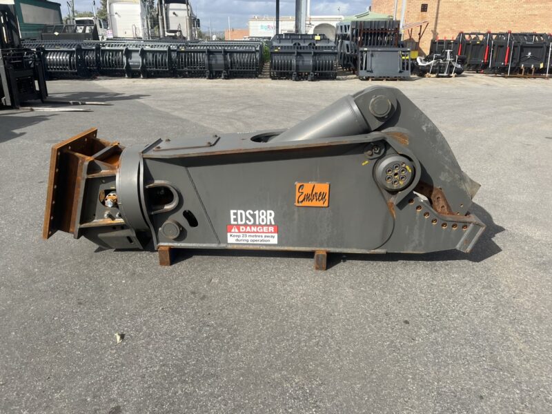 $6,000.00 Plus GSTEmbrey EDS22R Hydraulic steel shear with full 360 rotation to suit 30-40T size excavator, Requires 2 sets of hydraulic lines, No case drain required, Flow...Read MoreEmbrey EDS22R Hydraulic steel shear with full 360 rotation to suit 30-40T size excavator, Requires 2 sets of hydraulic lines, No case drain required, Flow rate 220-300Lpm, Have various head brackets to suit,SKU: SB260101