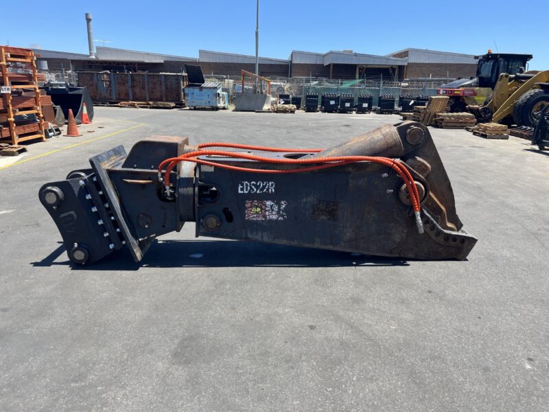 Embrey EDS22R Hydraulic steel shear with full 360 rotation to suit 30-40T size excavator, Requires 2 sets of hydraulic lines, No case drain required, Flow rate 220-300Lpm, Have various head brackets to suit,
