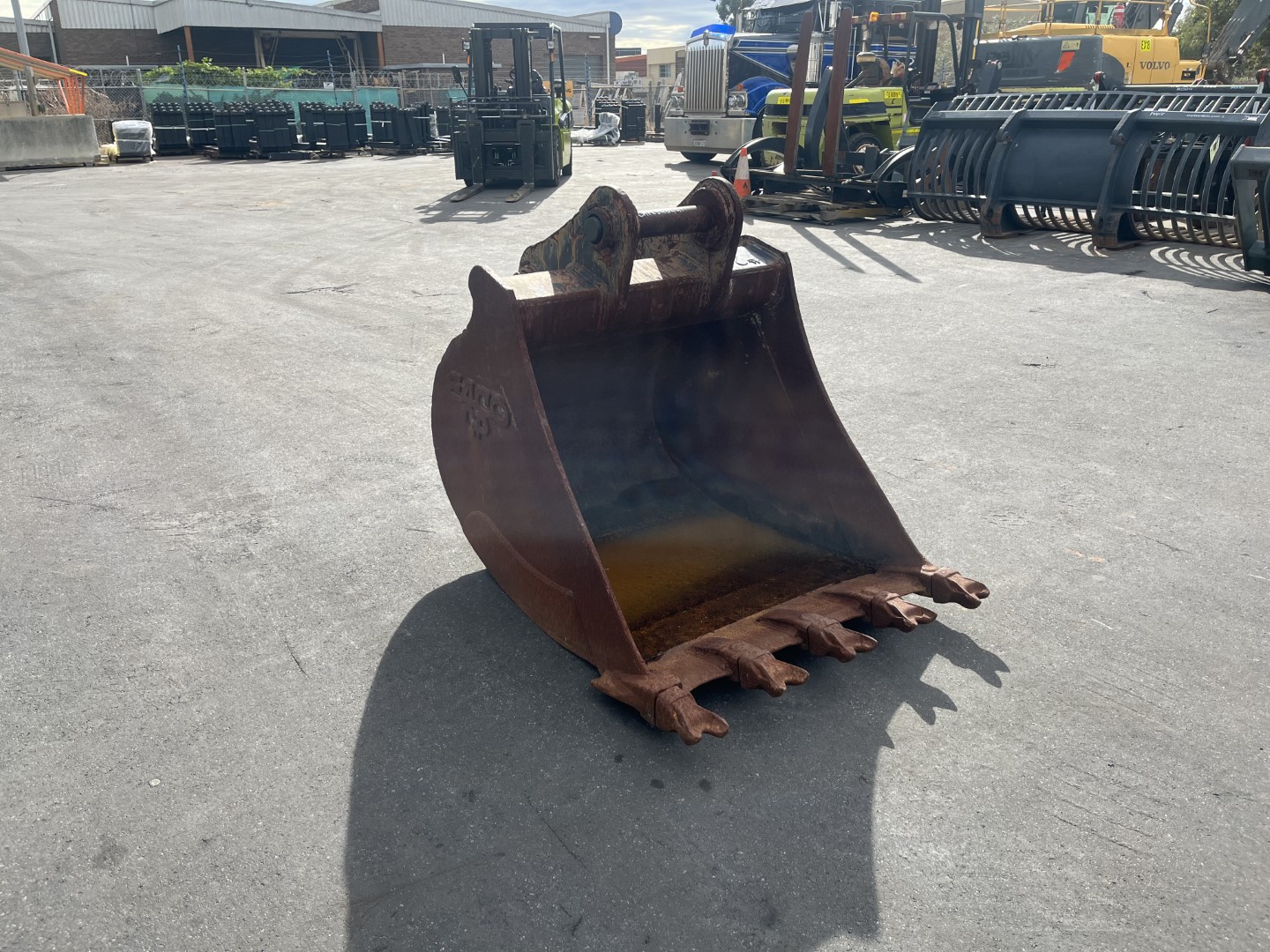 900mm wide GP bucket with teeth (980mm wide at teeth), 65mm pins, 255mm ibe and 380mm cp to cp