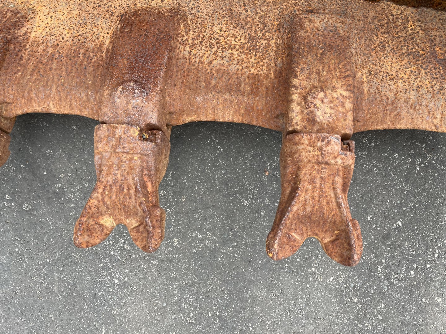 - Note, Bucket has high centre pressing to pins. Also front teeth are cracked