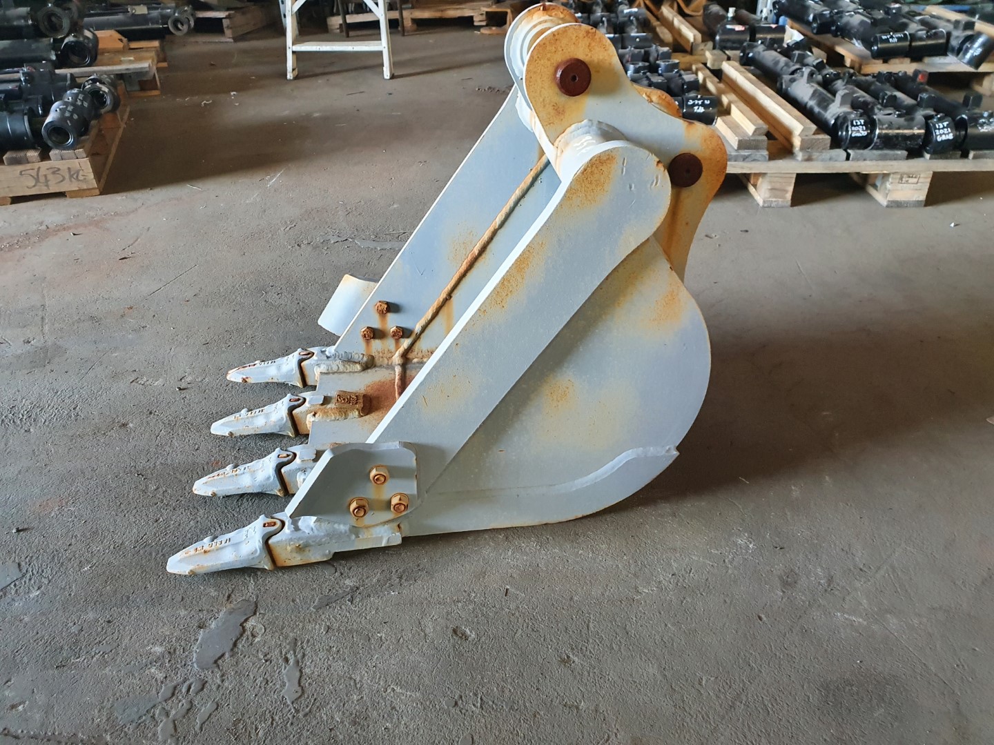 - Note, Bucket has high centre pressing to pins. Also front teeth are cracked