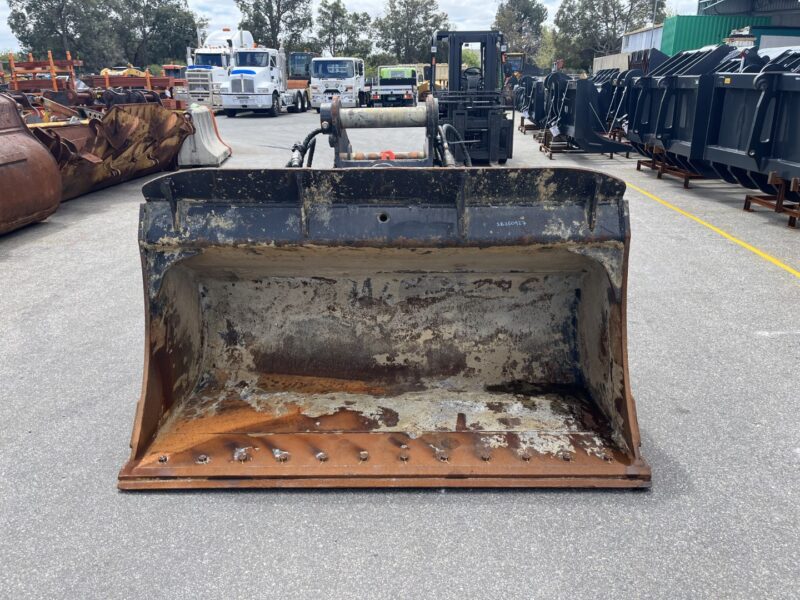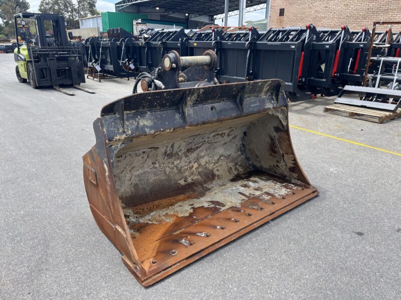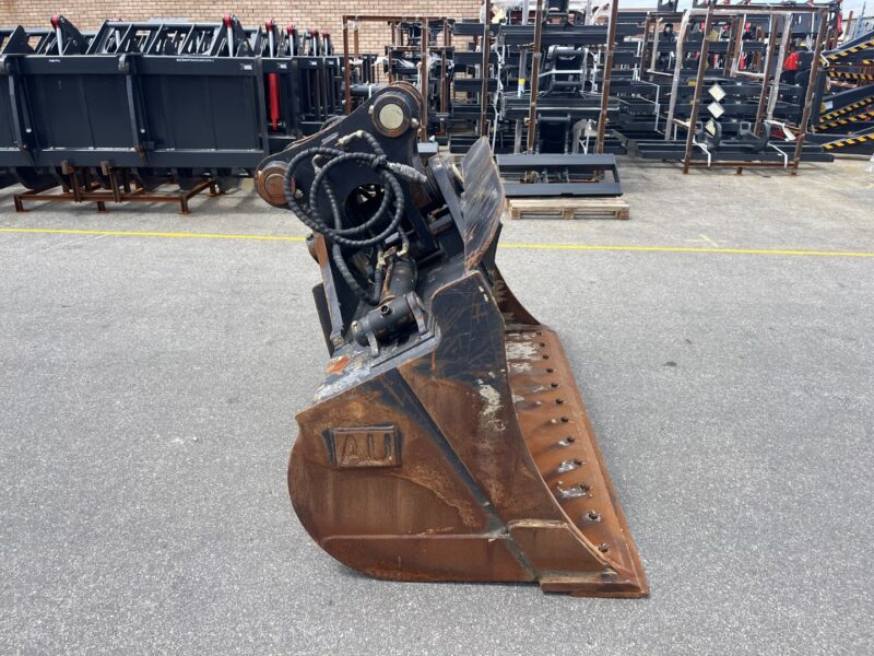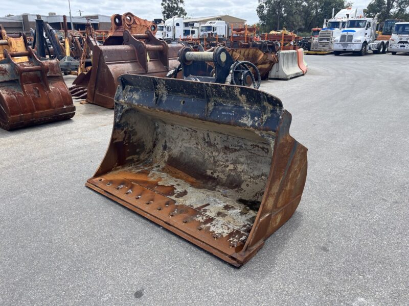 Ex Hire AU 1900mm wide hydraulic tilting batter bucket with BOCE, 80mm pins, 350mm ibe and 445mm cp to cp