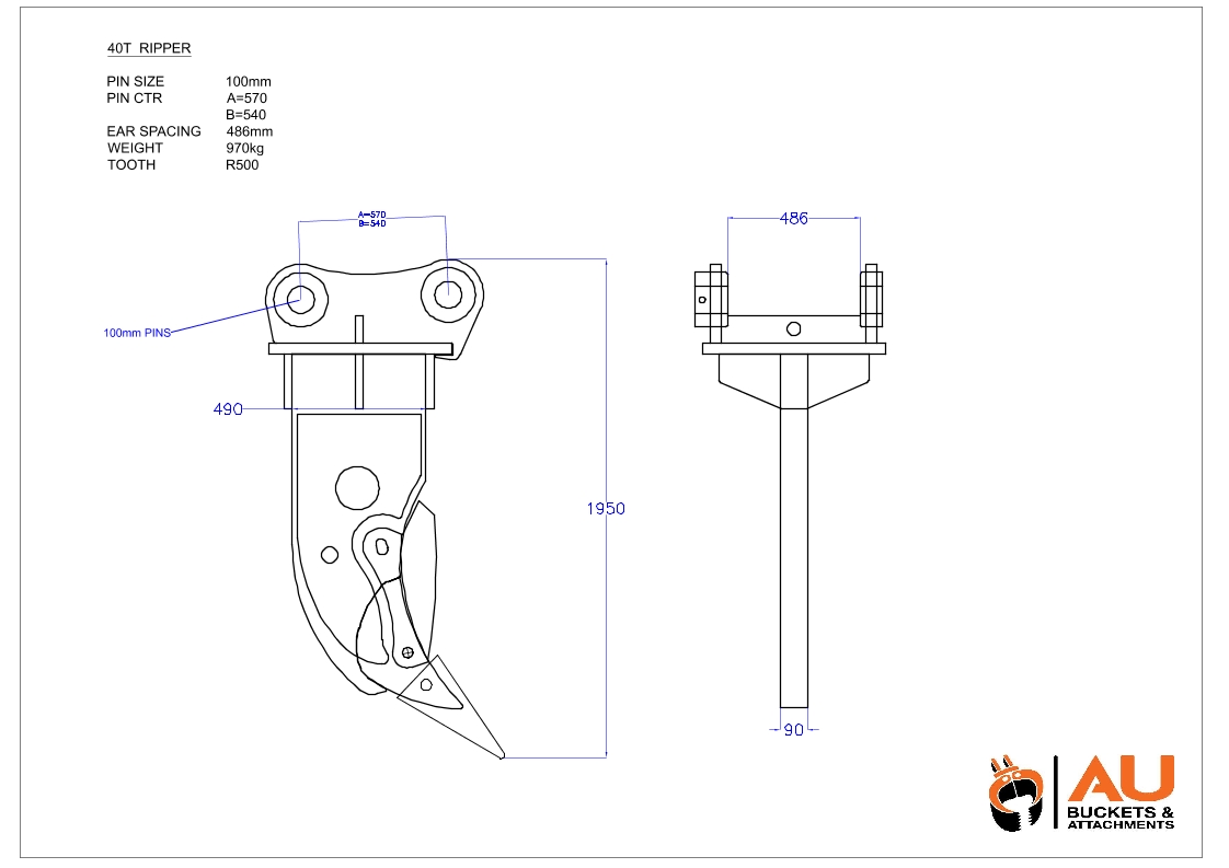 $150.00 – $750.00Price range: $150.00 through $750.00 Plus GSTAU 1310 mm long ripper with tooth and shroud, 100mm Pin, 540mm (CP to CP), 486mm (IBE)Read MoreAU 1310 mm long ripper with tooth and shroud, 100mm Pin, 540mm (CP to CP), 486mm (IBE)SKU: AU19100BEXCRIP-2