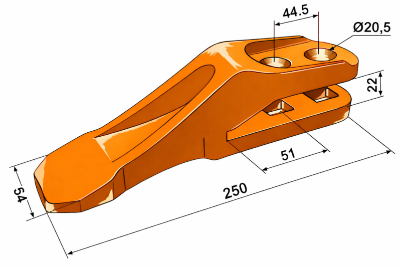 Part #531.03205 is a JCB-style bolt-on centre bucket tooth designed for quick and secure mounting on a wide range of JCB backhoes and excavators. Engineered for strength and reliability, this general-purpose tooth provides excellent ground penetration and wear resistance in trenching, site prep, and utility work.