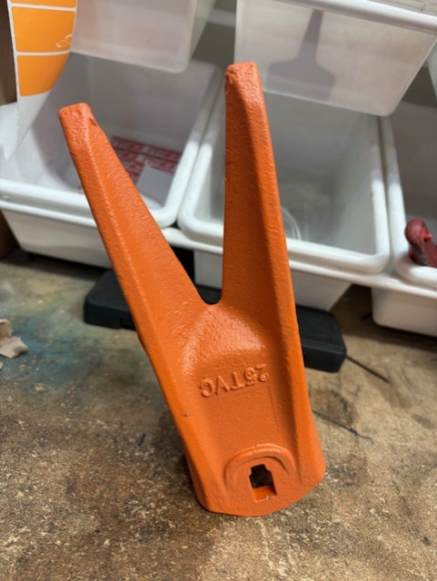 The E25TVC is a robust ESC0-style conical twin tiger tooth, designed for the 25 Series and built to tackle compacted, rocky, or frost-affected ground. Its double-pointed tiger profile delivers aggressive penetration, while the conical fitment ensures a secure hold under heavy stress.