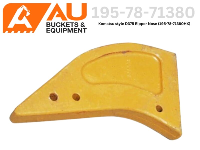 Part #195-78-71380, also known as 195-78-71380HX, is a heavy-duty Komatsu-style ripper nose designed for D375 bulldozer ripper shanks. This component serves as the core connection point for mounting ripper teeth, bushings, and pins—built to withstand the intense forces of deep ripping in quarrying, mining, and bulk earthworks.